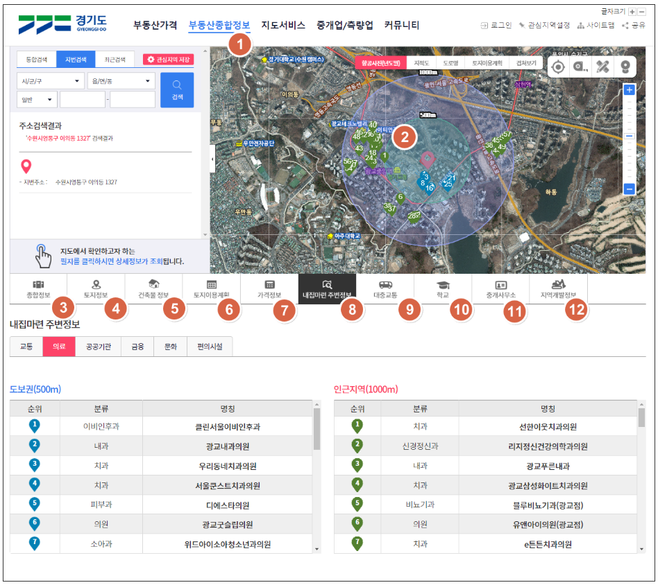 * 부동산종합정보 - 지번 조회를 통해 종합정보/건축물정보/내집마련 주변정보 등을 확인