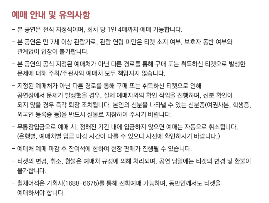 * 휠체어석 문의 : 1688-6675
