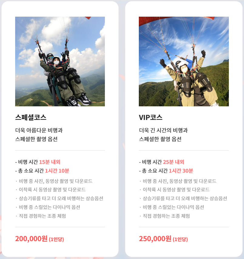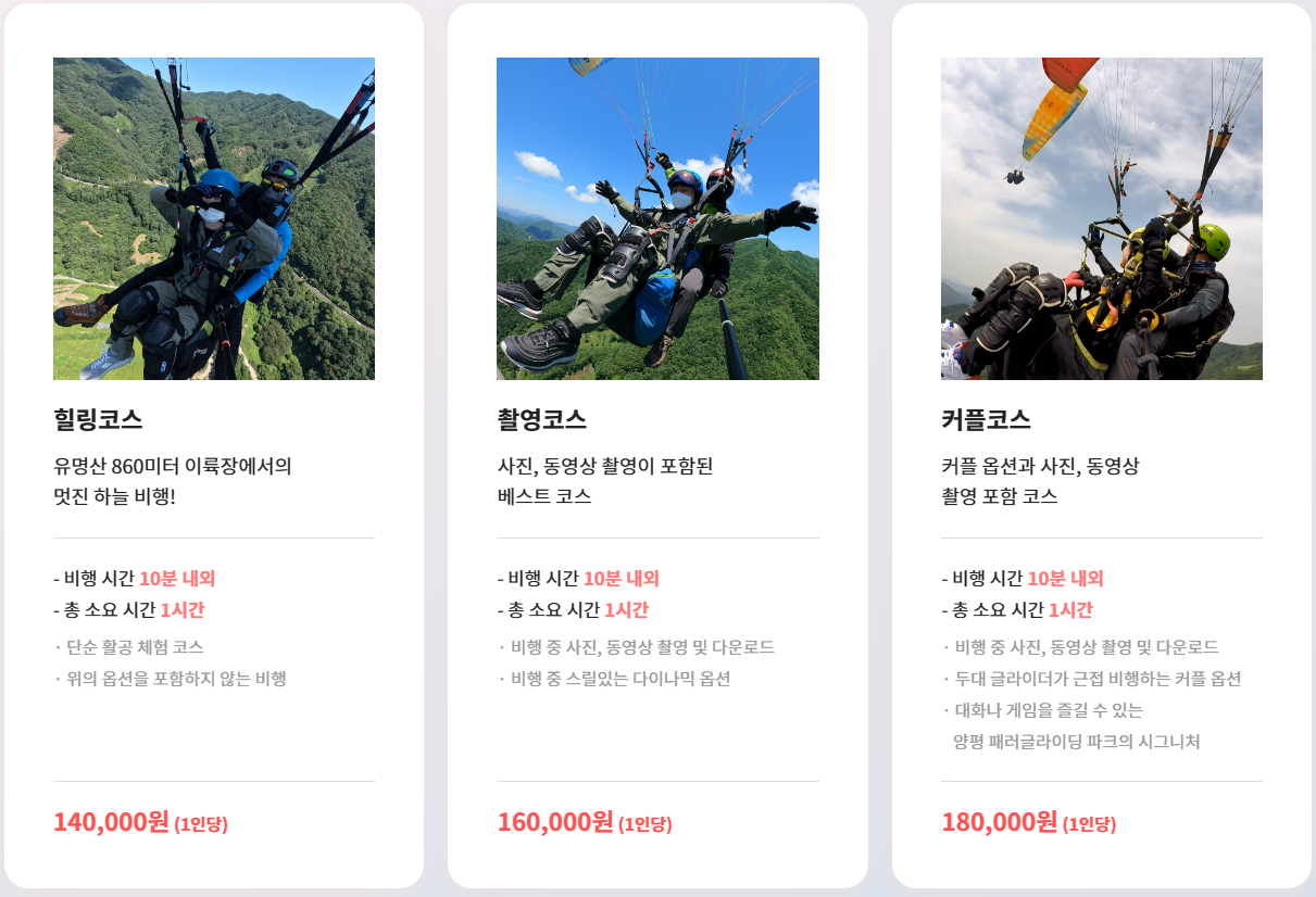 양평패러글라이딩파크 체험비행을 예약합니다.
