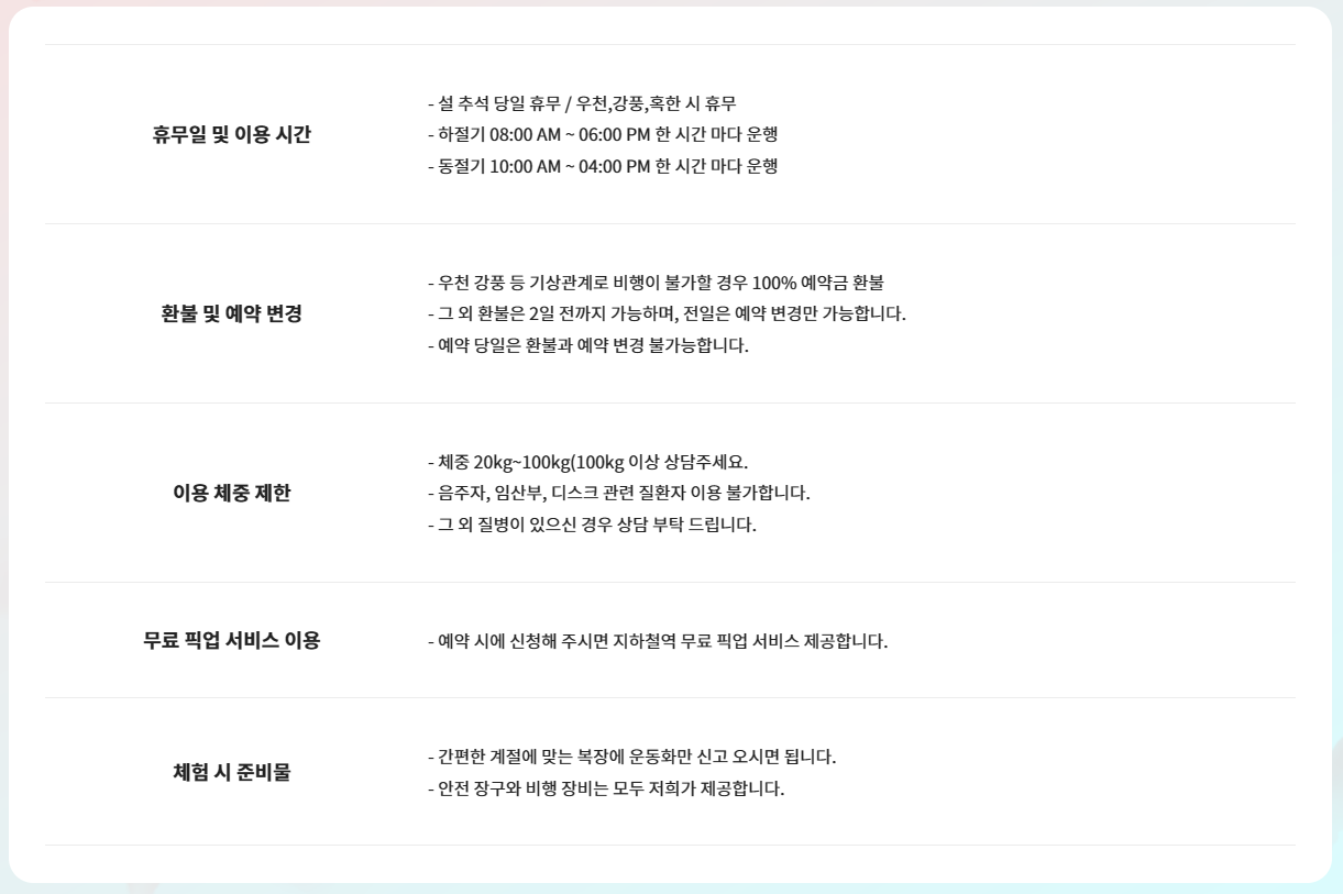 #예약안내 # 코스안내 #비행안내 #위치안내
