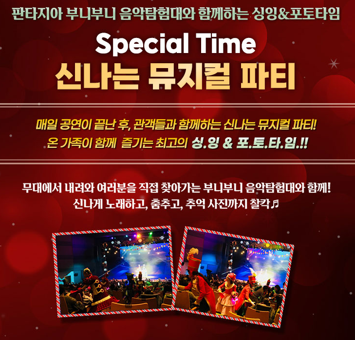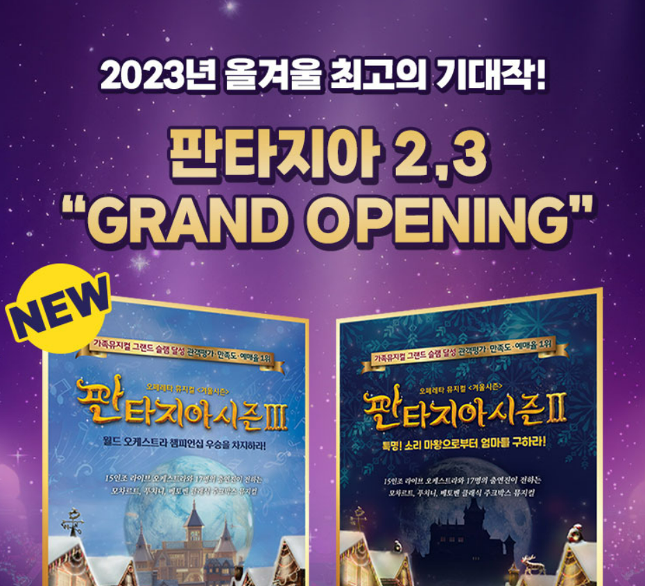 겨울 때만 되면 이 뮤지컬이 생각이 나죠? 우리 가족들이랑 다 같이 관람할 수 있는 뮤지컬! 바로 '판타지아'죠작년에 놓쳤어 못 본 판타지아 뮤지컬을 올해는 꼭! 시간을 내셨어 온 가족이랑 다 같이 판타지아 뮤지컬을 관람하셨어 즐거운 추억을 만드세요. 아래에서 바로가기 예매버튼 하시면 됩니다.